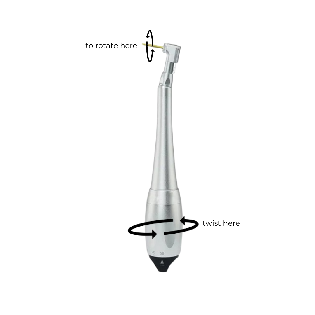 When "unscrewing" twist the base of the unit counter clockwise. It will unscrew at the torque setting that is selected. If trying to remove a healing cap, abutment etc and it is "stuck". Try increasing the torque setting to loosen the hardware.